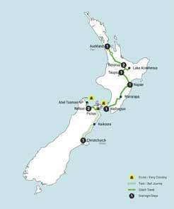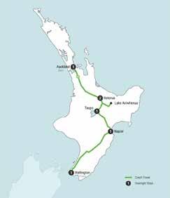 LeavingWellington,youboardtheNorthernExplorertrain andtravelalmostthelengthoftheNorthIslandto Auckland.ExperiencetheextremesofNewZealand’s sceneryfromthesparklingKapiticoasttothevolcanic peaksoftheCentralPlateauandthefertilefarmlandsof Waikato.
