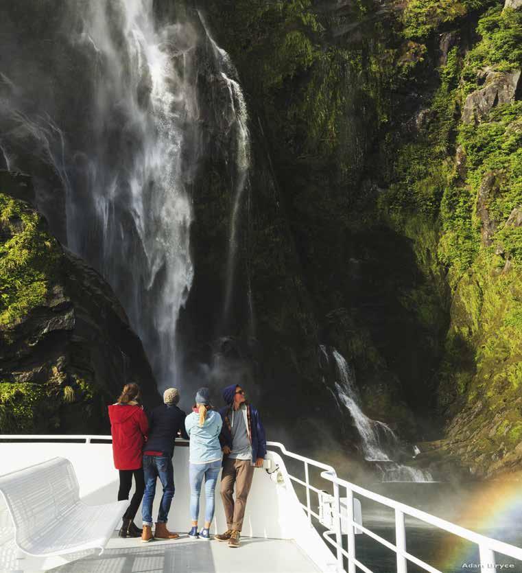 Today join your guided coach tour to Milford Sound. You wind your way south around the edge of Lake Wakatipu towards Te Anau and Fiordland National Park. The first stop will be a morning tea break at Te Anau before travelling onto Milford. There are various photo stops on your way into the Sound. Mitre Peak will greet on arrival into Milford Sound and your tour connects with a boutique small boat cruise. Enjoy your packed lunch box on-board while cruising past sheer cliff faces and cascading waterfalls. You journey back to Queenstown in the comfort of your guided coach arriving back about 7.30pm.