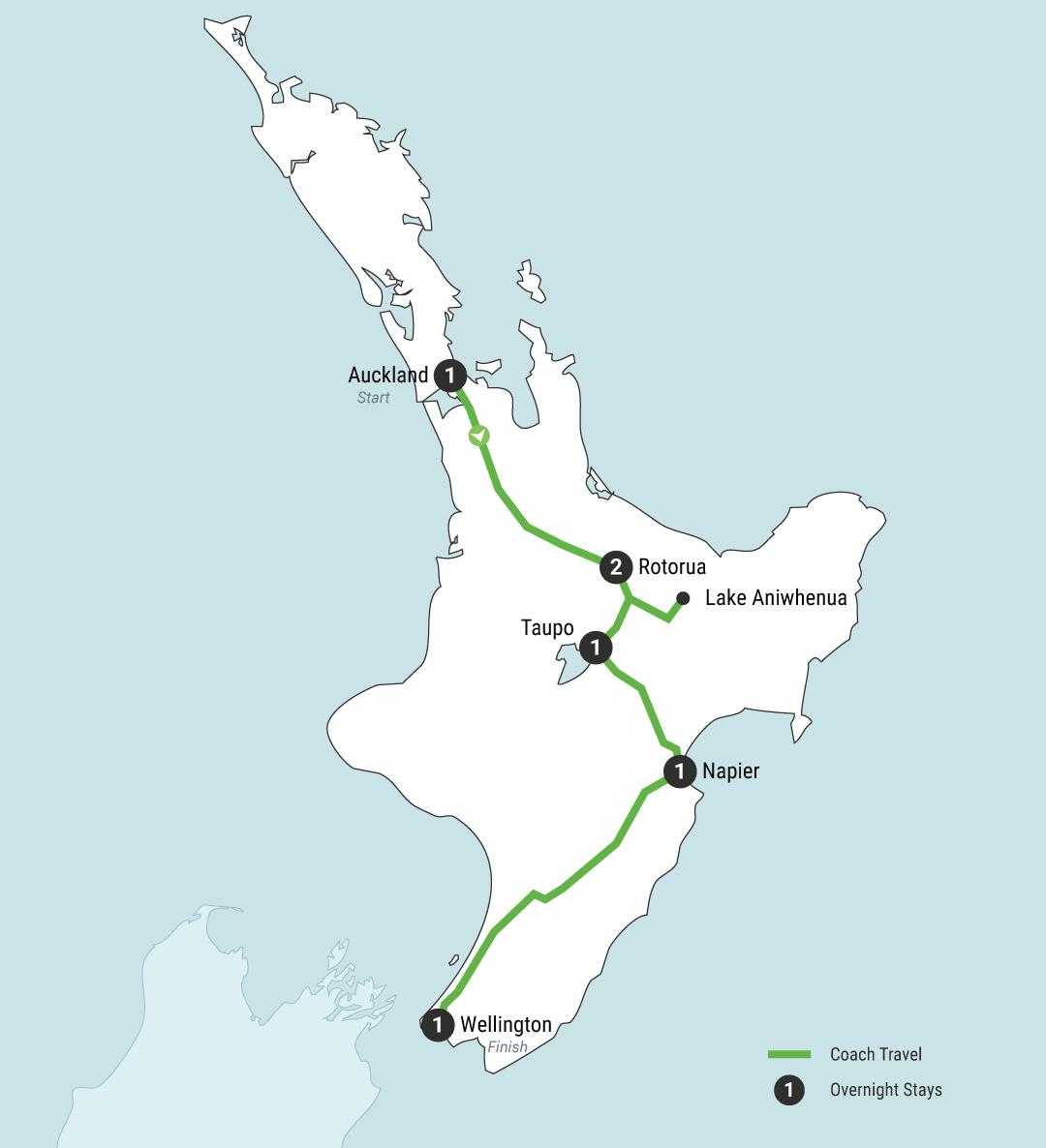Passes through the volcanic heartland of the North Island, with highlights including the Tongariro National Park, the Raurimu Spiral, and the Kapiti Coast