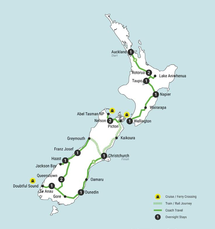 • Return transfers to/from Train station to hotels in Christchurch and Kaikoura