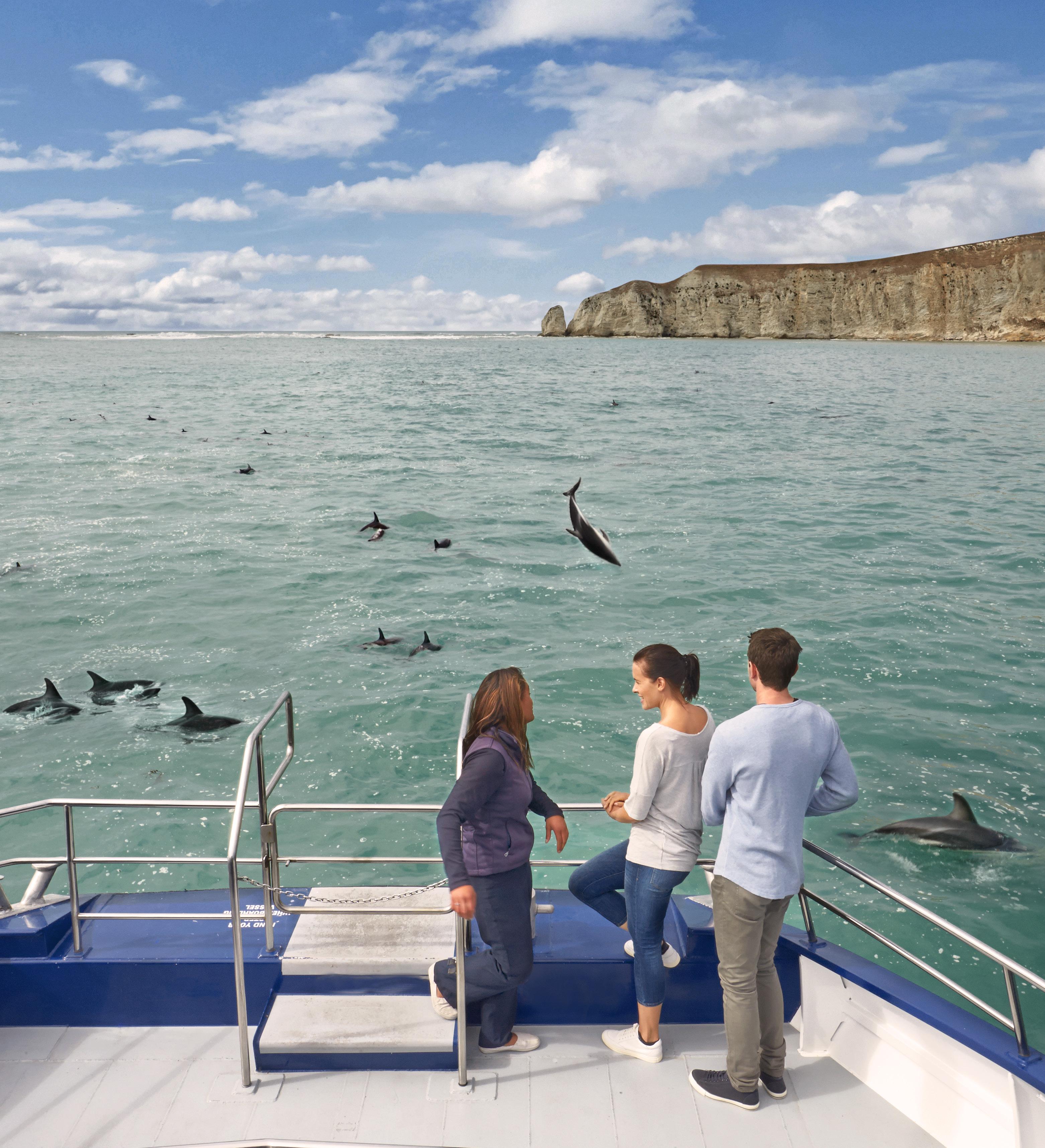 Experience a Kaikoura Whale Watch Trip that will give you a chance to see some of the majestic creatures that inhabit the waters around Kaikoura. You will board a state-of-the-art catamaran and cruise along the coast in search of sperm whales, humpback whales, orcas, dolphins, seals, and more. You will also have access to the Captain's Cabin, which provides an exclusive and intimate viewing experience with commentary from the skipper.