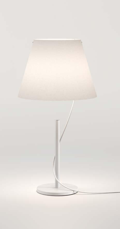 Lampada da tavolo e da terra Hover, design Studio Yoy per Lodes: il paralume sembra separato dalla base e crea l’illusione che la sorgente luminosa fluttui nell’aria.