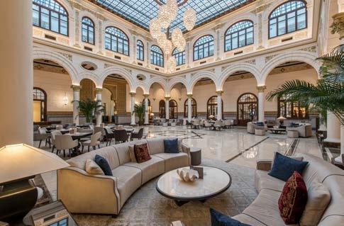 La nobiltà storica del Grand Hotel risplende tra dettagli d’arte mediterranea e ispirazioni orientali, grazie all’il luminazione Arabesque di VG che trionfa nella grande hall, alla reception e in tutti gli spazi comuni.