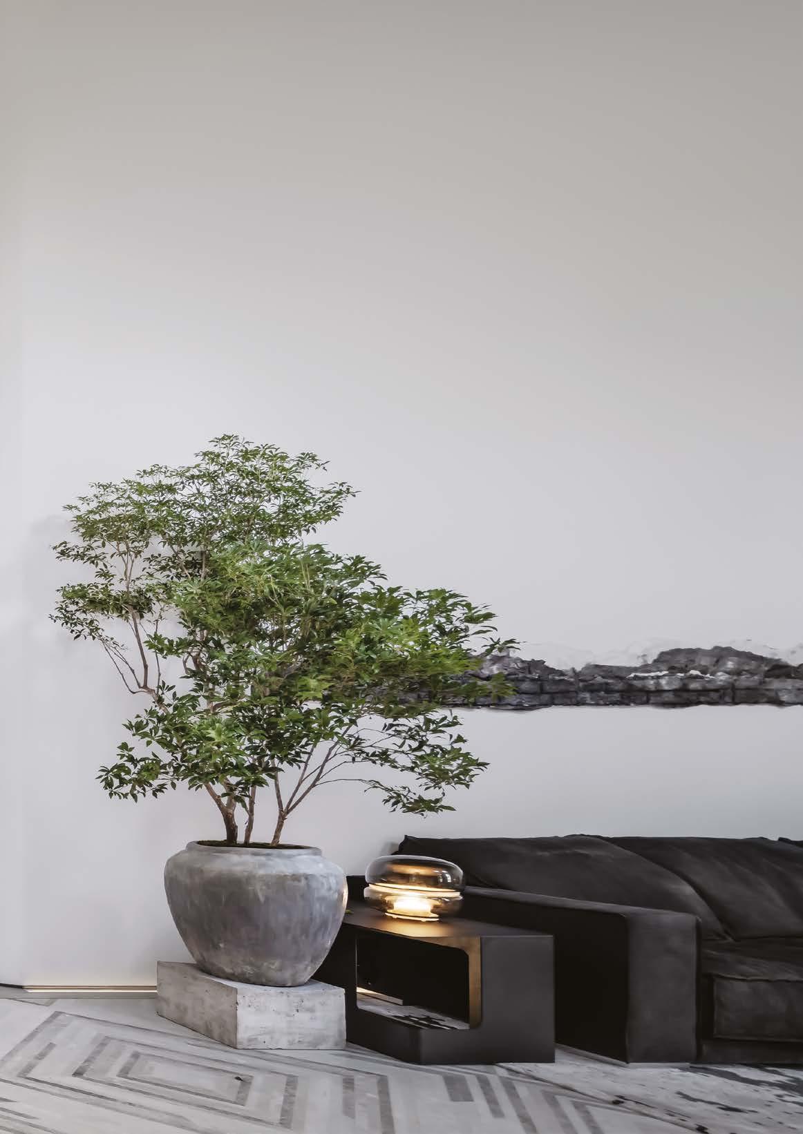 Although the foyer is relatively small, it is rich in combination of Western and Eastern phil osophical aesthetics. In a small space like this presenting a sense of serenity, the sim plicity of the texture and the quality lighting design help the space to function well as a connection and transition. The adequate ratio of materials use are not overly excessive but rather smooth, generating a rhythm of daily living and a distinctive charm. Even at the corners, one can get to enjoy a poetic expe rience viewing the vista from different per spectives.