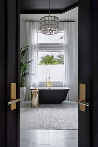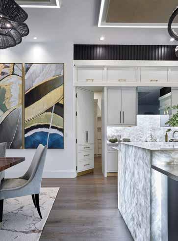 “The client came with a lot of inspiration images, including one from Pinterest that happened to be a project that Lisa did a while back,” O’Brien reveals. The collaboration between the interior designers and the builder for this Quail West Golf & Country Club project was a perfect match, and Guild’s established partnership with the builder allowed for a seamless design process. LMG Design Consulting played a pivotal role from the very beginning of the project, collaborating closely with the builder to create the floor plan and carefully developing intricate designs for ceilings, trim, and various architectural features. “It was a very heavy lift on the design side, and it was awesome — it was super fun,” Guild exclaims. u