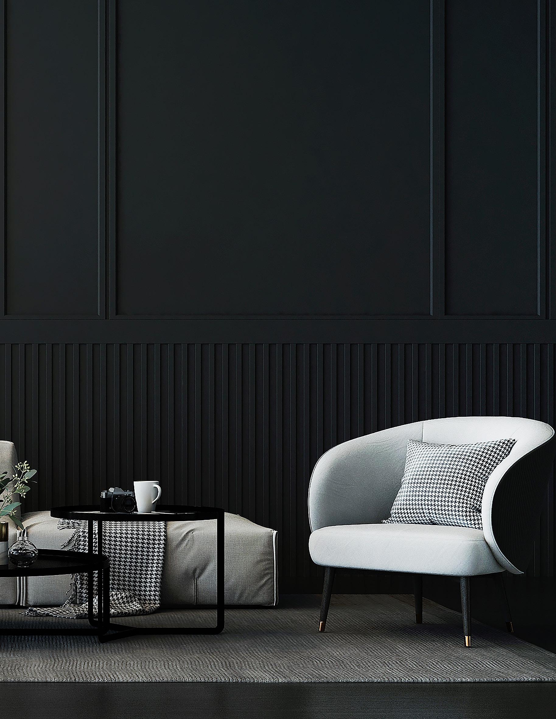 • How to use it: Keep walls in warm mushroom tones, trim in soft white, and doors in near-black. Layer boucle throws, ribbed glass, and smoked oak furniture for added texture.