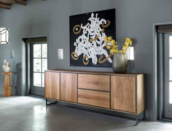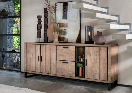De Trapani-collectie wordt gekenmerkt door het gebruik van gerookt mangiferahout, dat de meubels een kenmerkende warme tint geeft. De donkere metalen details maken het helemaal af en zorgen voor een industriële look.