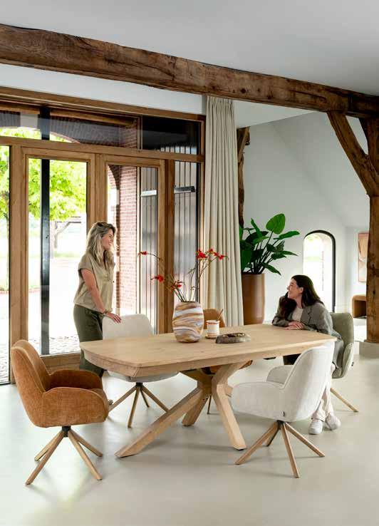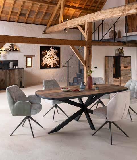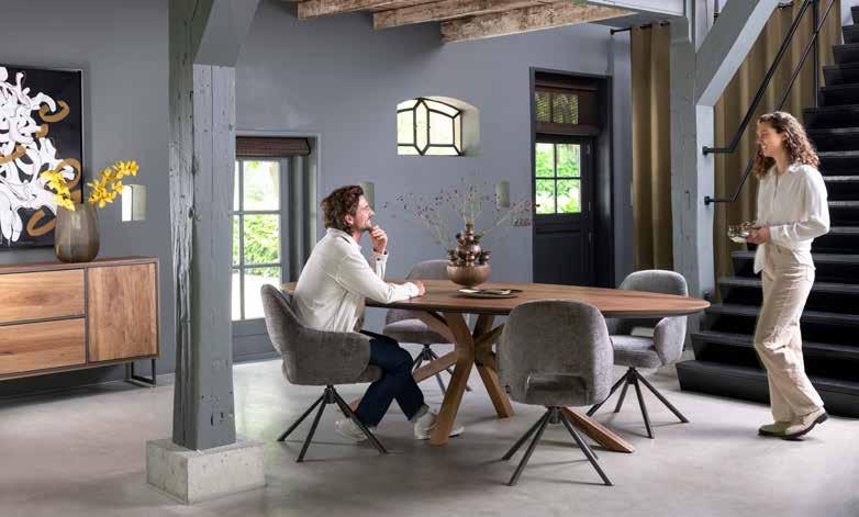 uitschuiftafel Nyon verkrijgbaar in diverse maten vanaf 1699,- 1449,- | 170/230x100cm 1899,- 1599,- | armstoel Riley vanaf 299,- 269,- (afgebeeld in stof Cadiz)