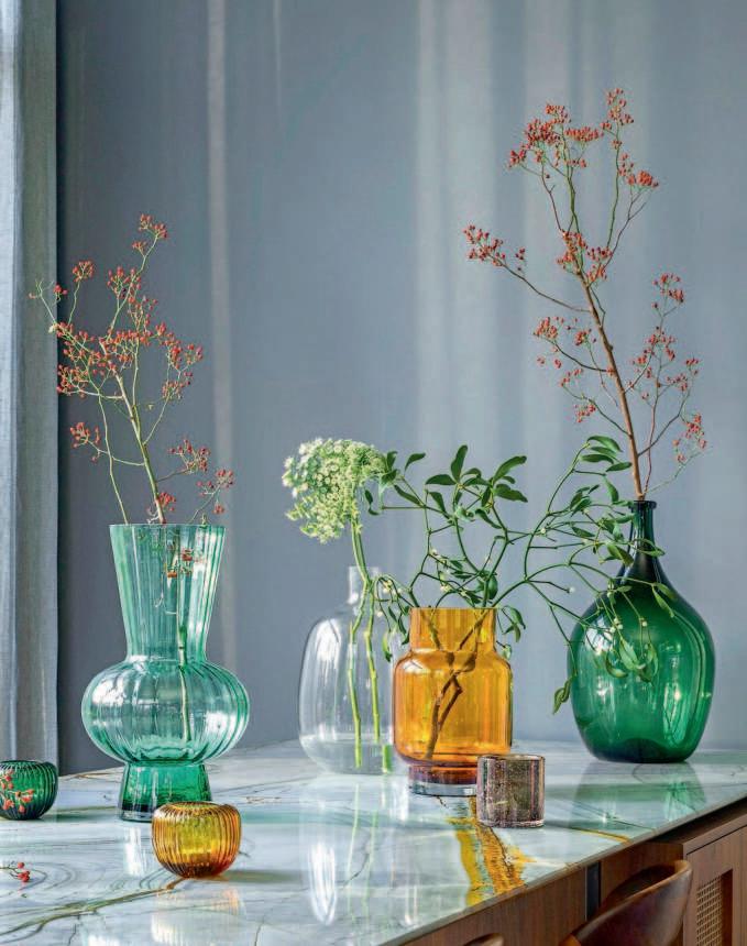 ‘Ik ben dol op gekleurd glas, zoals dit chunky exemplaar. Mijn tip: durf glaswerk te combineren.’