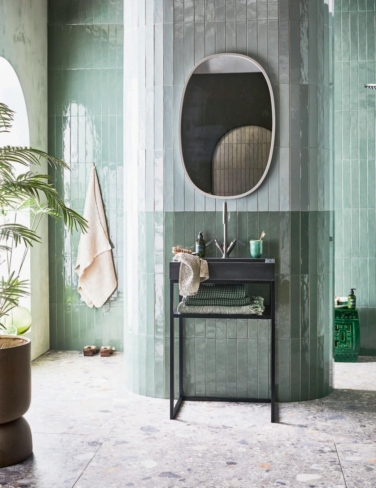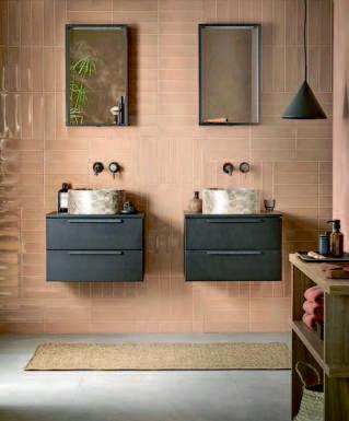 ‘Een van de nieuwste toevoegingen aan de vtwonen collectie is de matte tegel Earth. De serie bestaat uit e en tegels, tegels met cirkeldessin en een structuurvariant - tof te mixen en matchen op vloer én wand. De rechthoekige tegel komt op de vloer in de woonkamer van mijn nieuwe huis, in visgraatmotief. Ik kan niet wachten.’