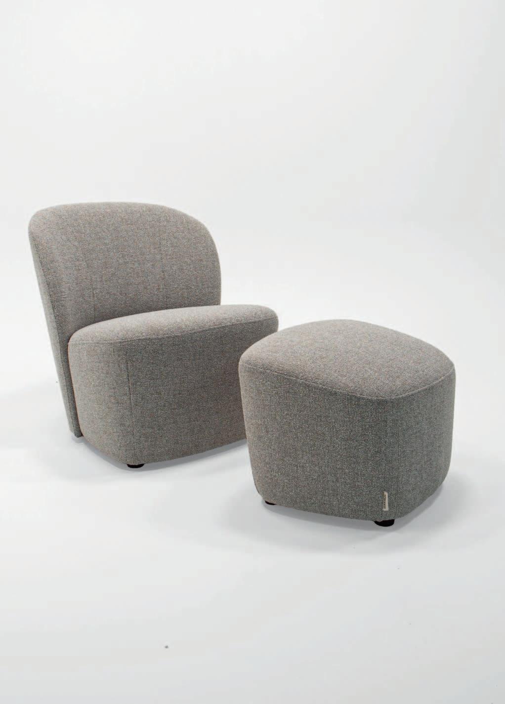 fauteuil Lofty, bouclé, 7 kleuren, 72x68x75 cm (bxdxh) € 299,en vtwonen hocker Lofty, bouclé, 7 kleuren, 62x48x41 cm (bxdxh) € 169,-.