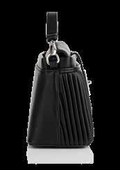 Black PU handbag with pleated PU detail. Rhodium plated hardware. Flap with magnetic clip closure. Fully lined. Inner side pockets. Removable shoulder strap. Protective dust.