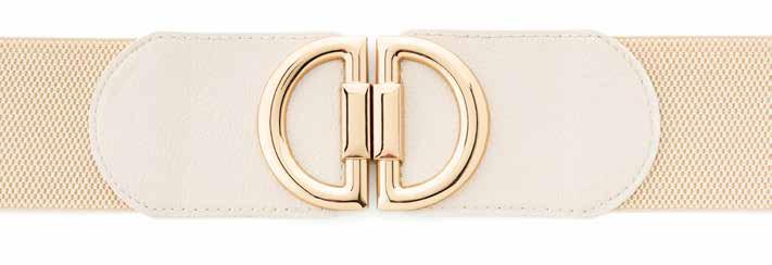 Ecru elasticated waist belt. Ecru PU detail. Gold plated hardware. Hook and bar closure.