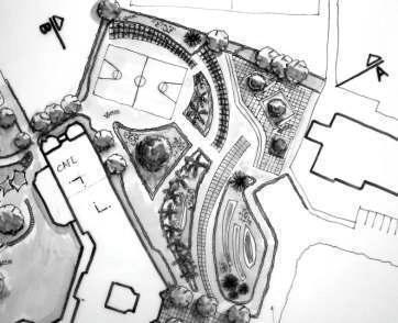 Solving the exterior ramp issue, The area around the patio had a steep slope which I redesigned for an ADA ramp providing a path between the two entrances