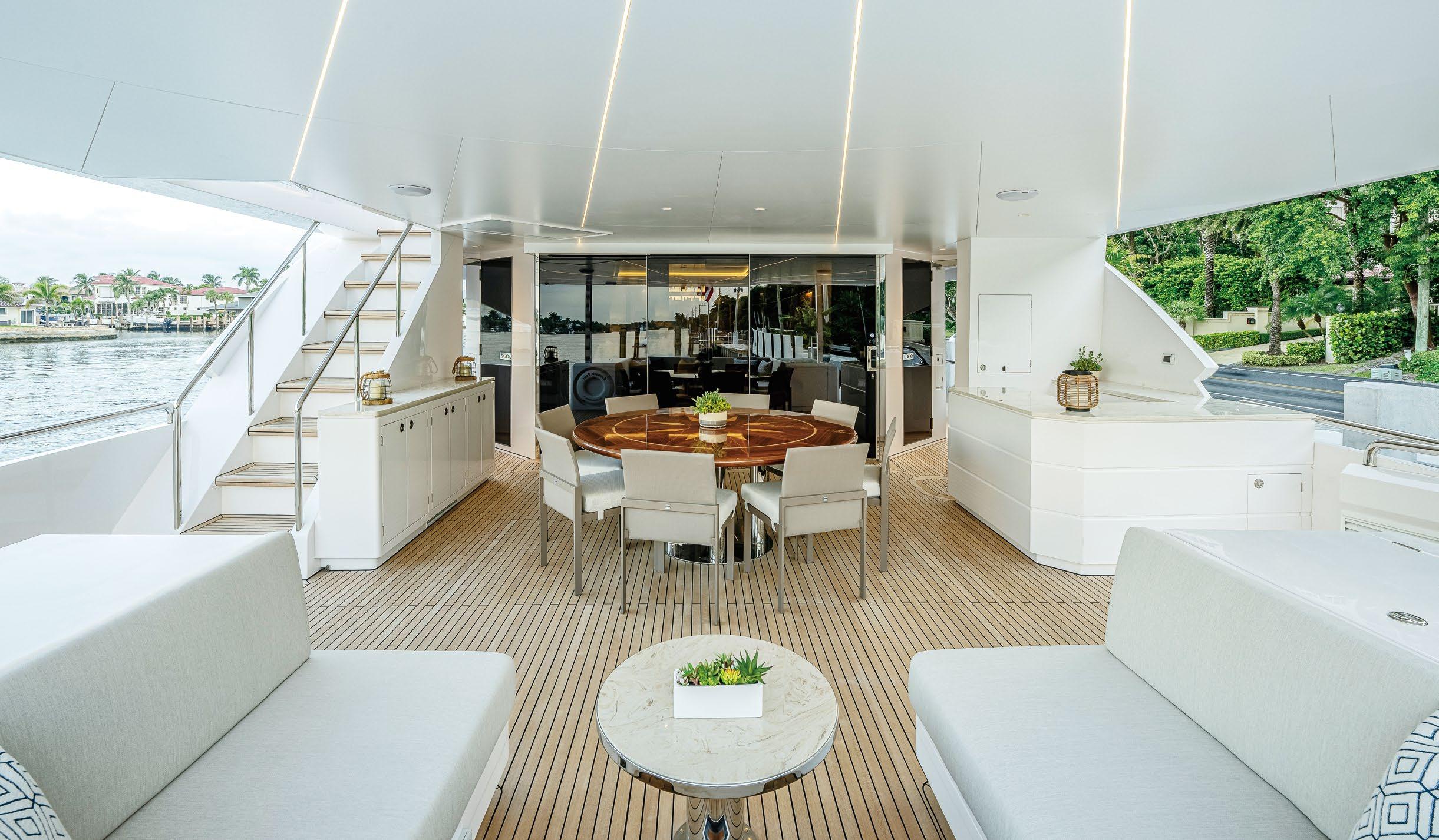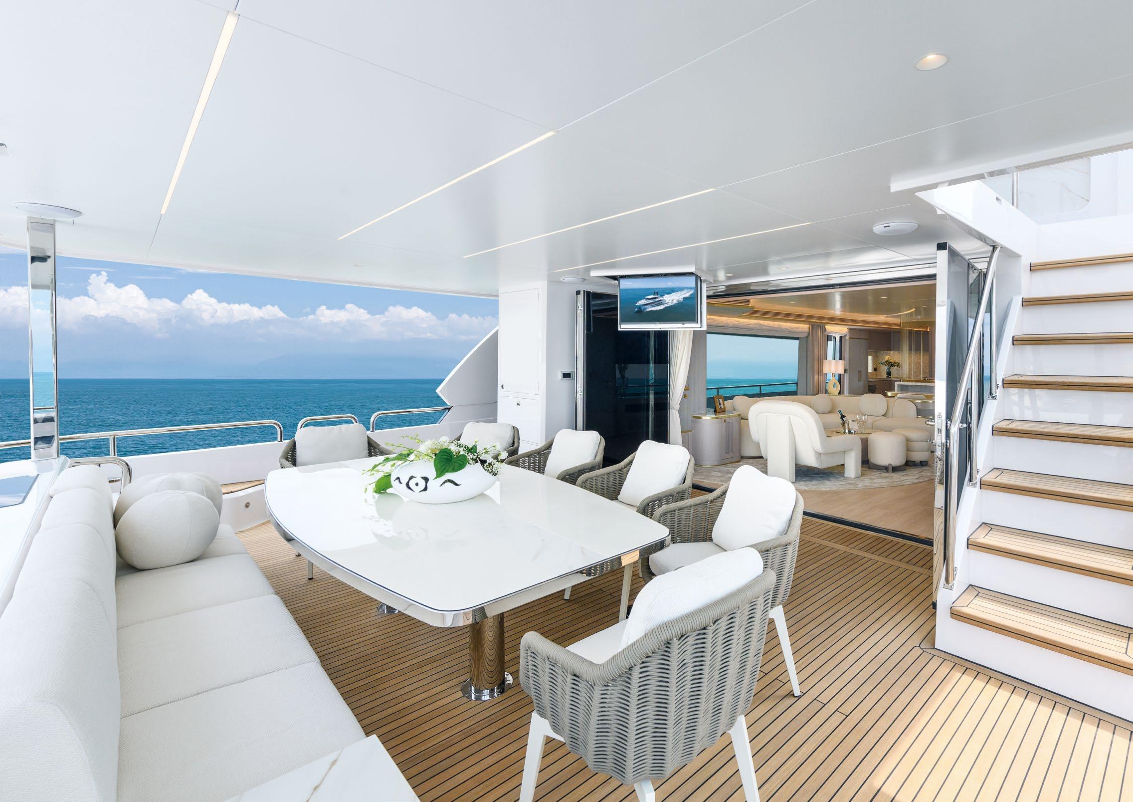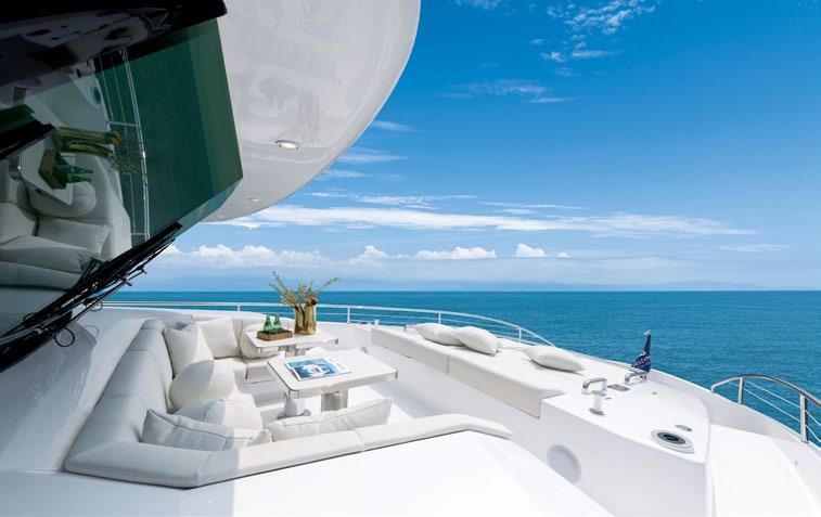 From the foredeck to the bridge deck and upper tri-deck, exterior areas are designed to suit owner preference.