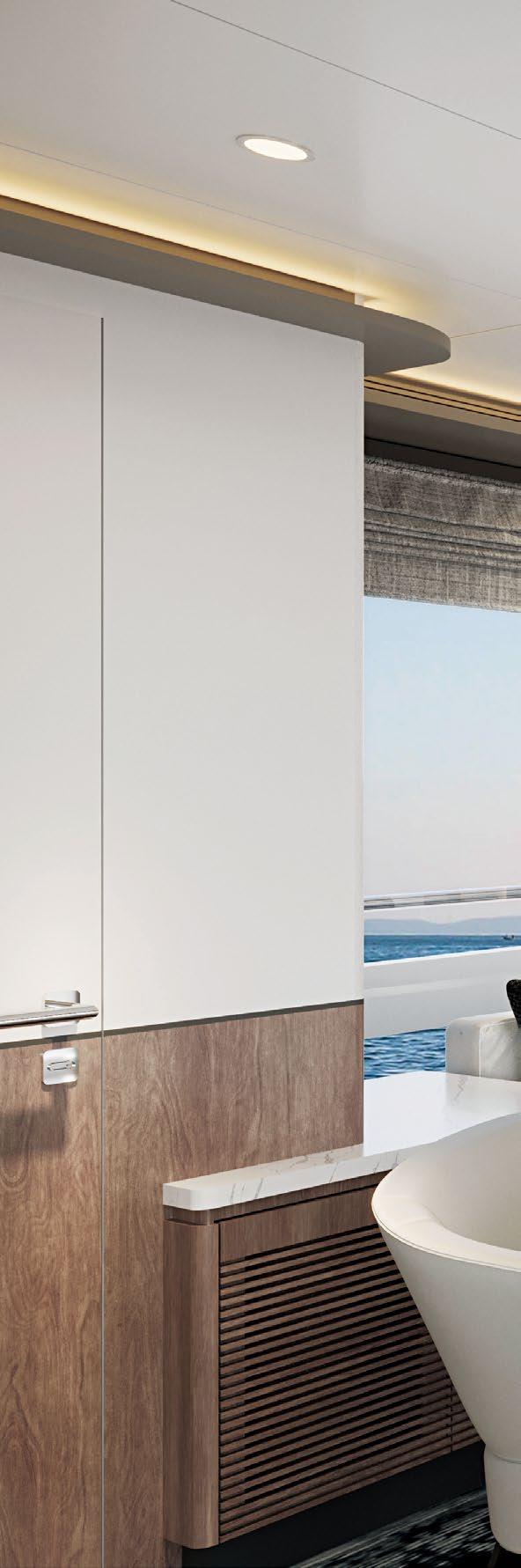 The FD Series yacht offers interior space and volume that is unrivaled, allowing for layouts and amenities once limited to much larger builds.