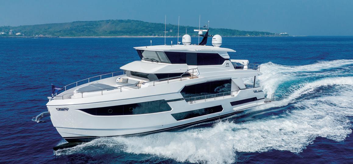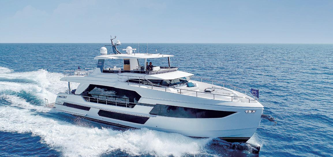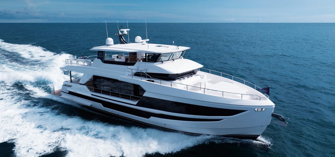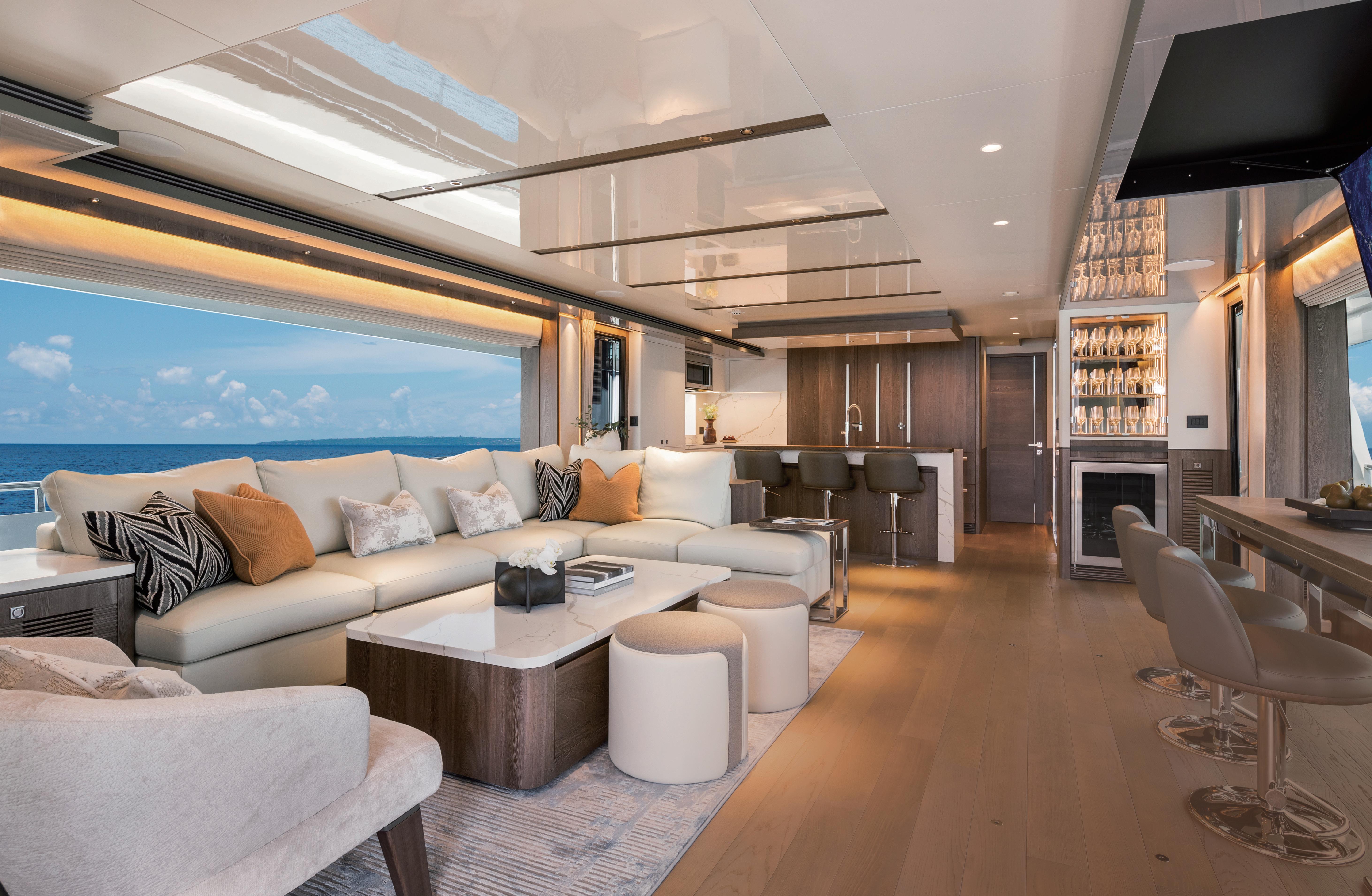 Packed with amenities within its 23’ 3” beam, this advanced mid-range yacht marries space with style and performance.