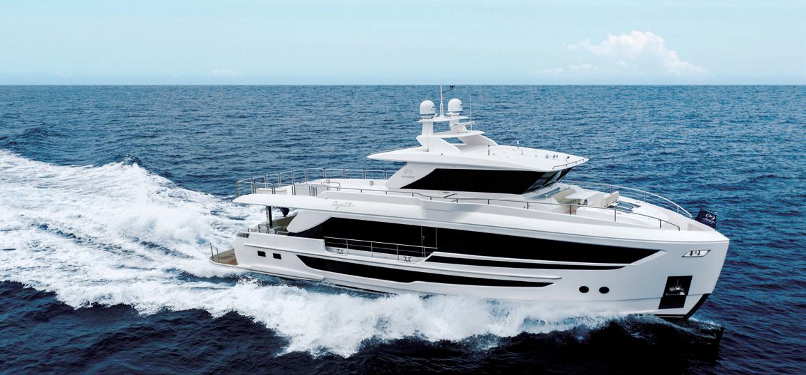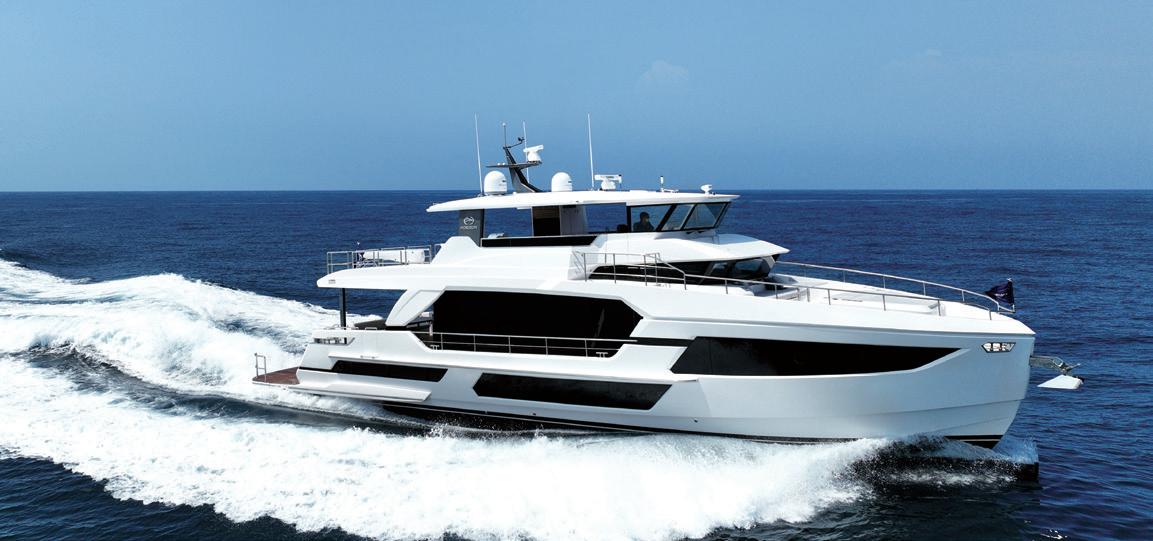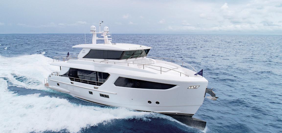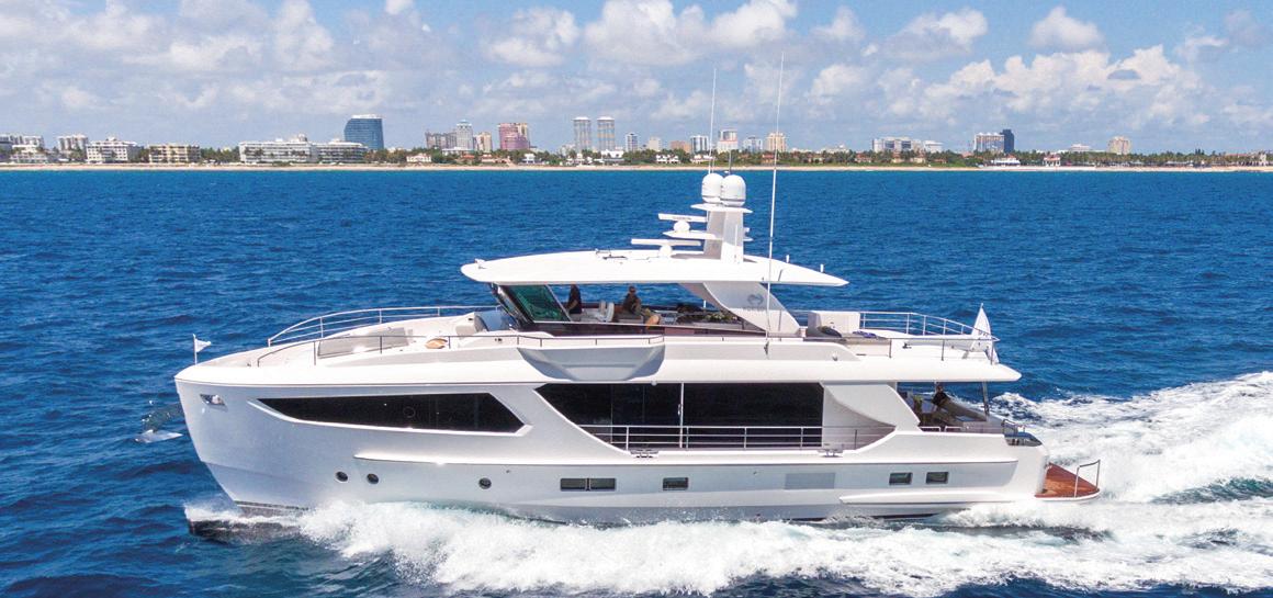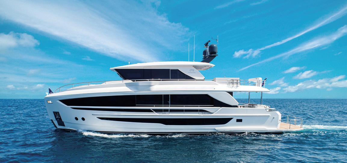 Packed with amenities within its 23’ 3” beam, this advanced mid-range yacht marries space with style and performance.