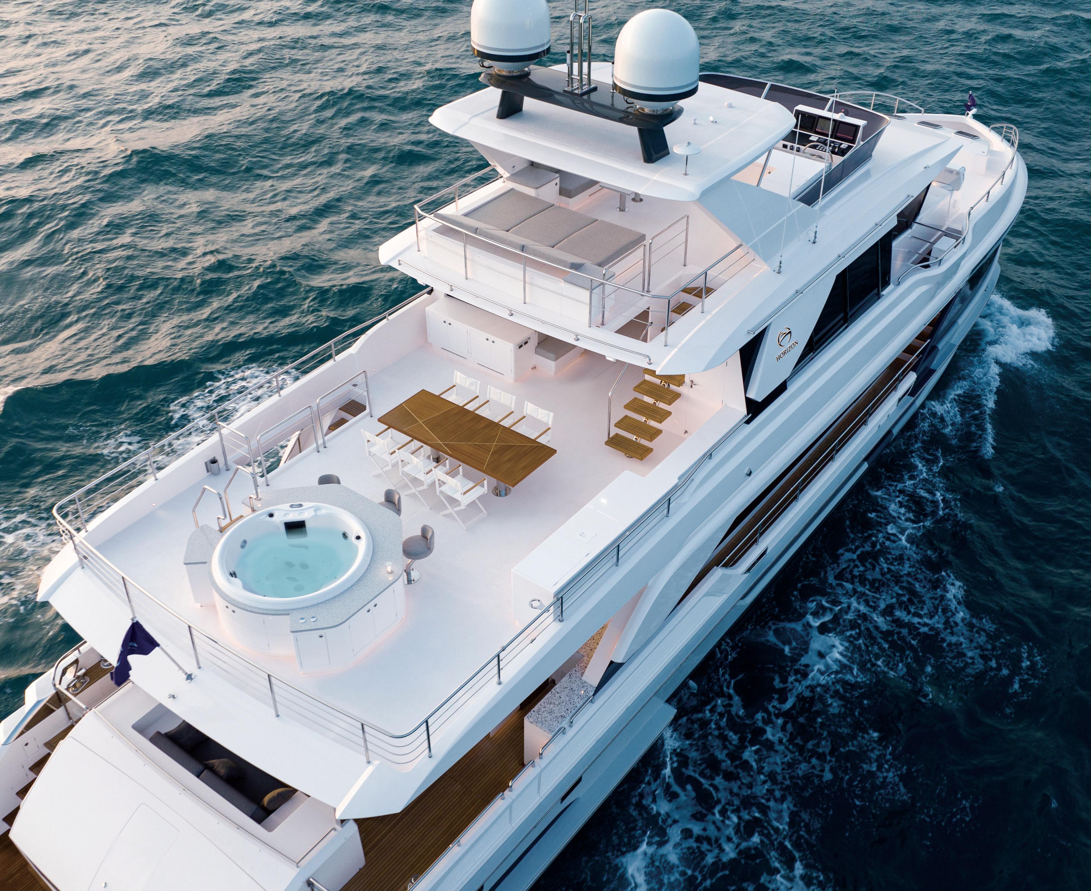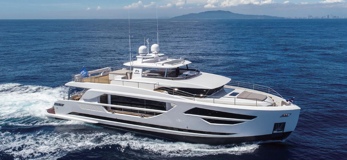 Marked by contemporary lines, tremendous interior volume, and ingenious functionality, the FD90 sets the benchmark for innovation in yacht design.