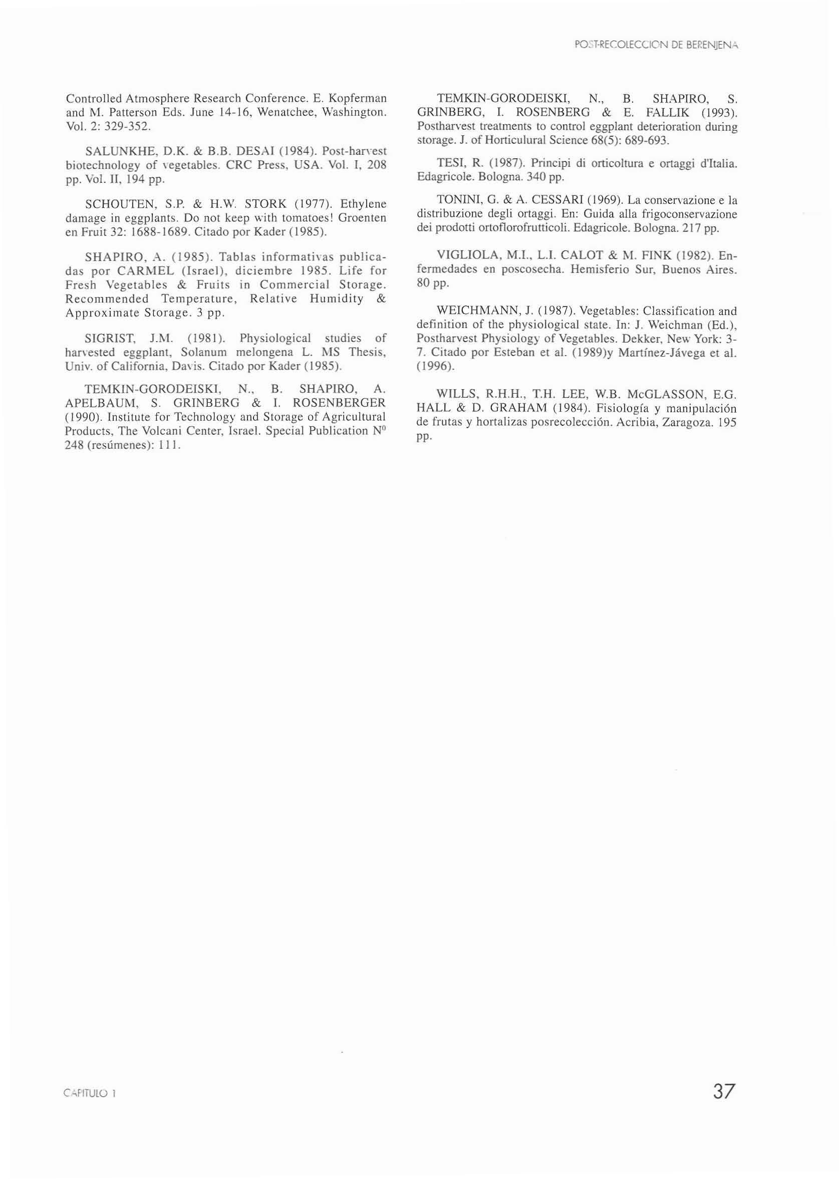 TEMK IN-GORODEISKI,N., B. SHAPIRO,A. APEL BAm l, S.GRINBERG & 1. ROSENBERGER (1990).InstituteforTcchno1ogyand Storage ofAgricultural Products .TheVolean¡Center,Israel.SpecialPublication N° 248(resúmenes):111.