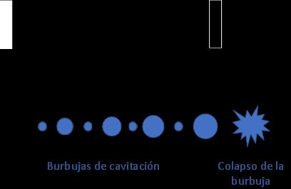Figura 7. Colapso de las burbujas debido al efecto de los ultrasonidos