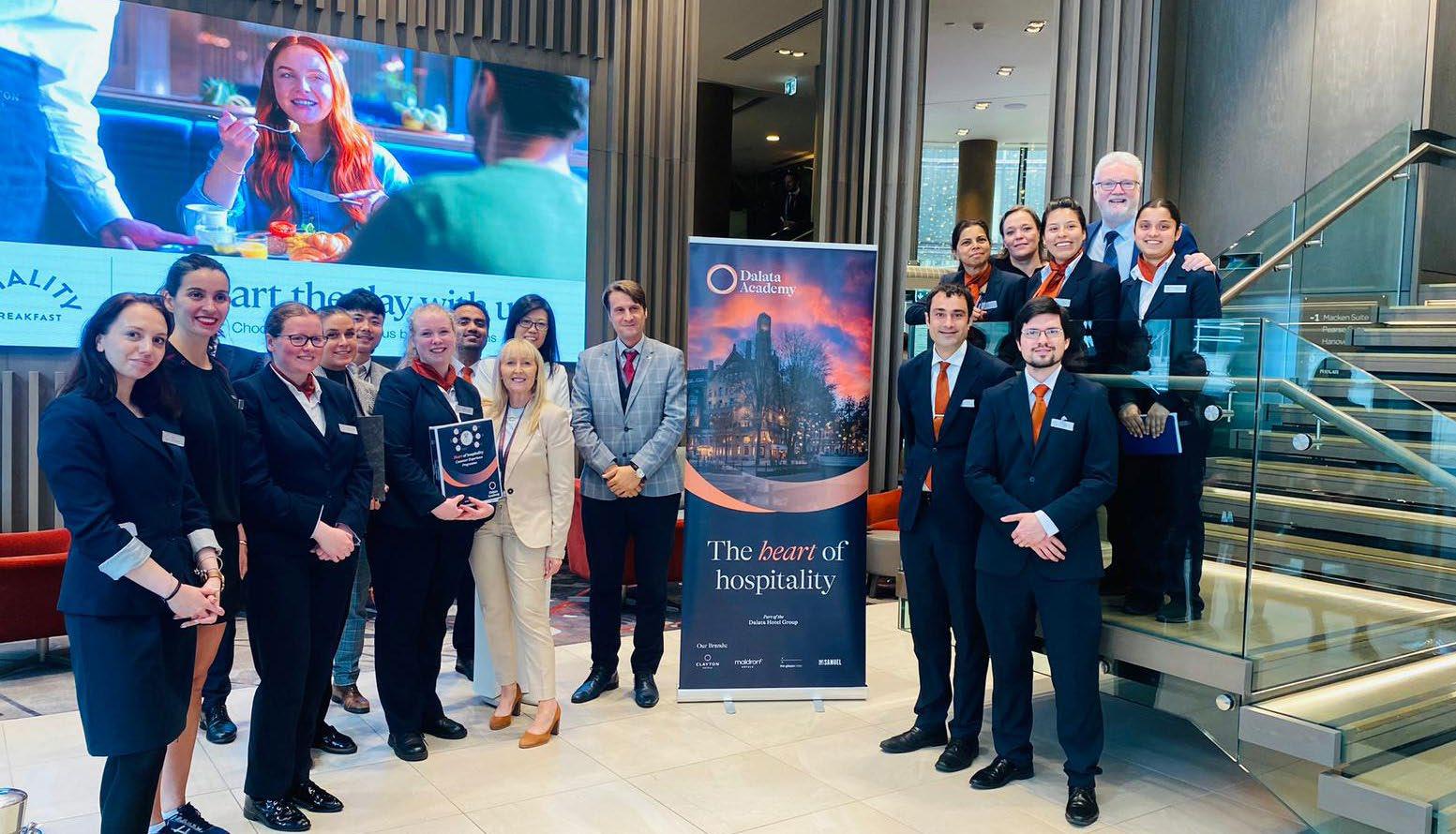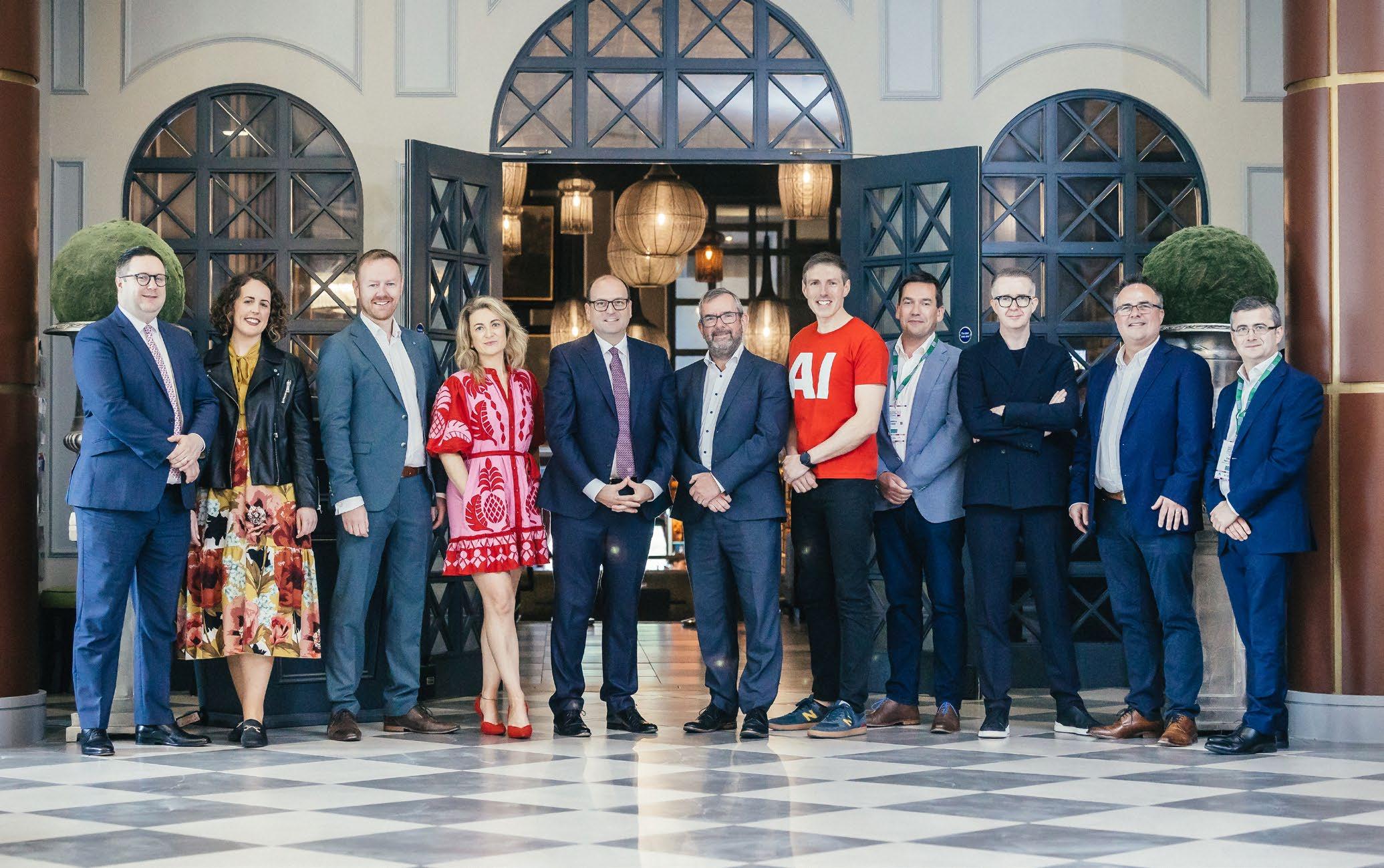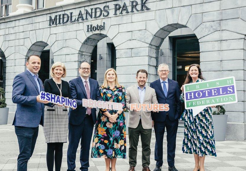 Aaron Mansworth (Trigon Hotels); Emer Corridan (Cahernane House Hotel); IHF President Michael Magner (Cork's Vienna Woods Hotel); Denyse Campbell (Maldron Hotel Dublin Airport); Dara Cruise (Co Ant Hospitality); IHF Chief Executive Tim Fenn and IHF Director of People Services Deirdre Fitzsimons.