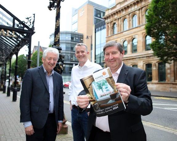 beverage sales growing during the year. Overall, income reached a new benchmark high of £92,314 per available room. Pictured are (l-r): John McGrillen, Chief Executive Officer at Tourism NI, Brian Clerkin, Managing Director of Sumer Northern Ireland and Michael Williamson, Consultant at Sumer Northern Ireland.