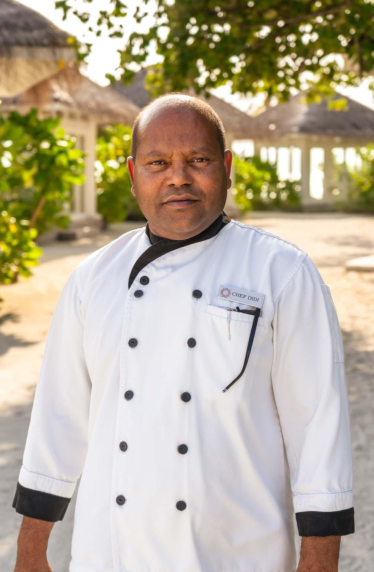 Born and raised in Maradhoo in the southernmost Addu City, Hassan Didi has dedicated over four decades to the culinary industry. His career began at the age of 14, when he took his first job as a laundry assistant at Rannalhi Resort (now Adaaran Club Rannalhi Maldives) in 1982. From these humble beginnings, he has progressed to lead the kitchens at Sun Siyam Olhuveli Maldives as its Executive Chef.