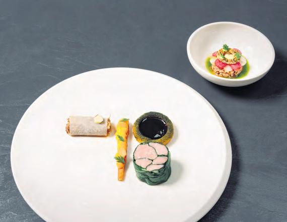4 Ein festes Signature Dish habe ich nicht. Aber ich liebe es, in der Pâtisserie mit ungewöhnlichen Zutaten zu experimentieren. Es macht mir Spass, zum Beispiel Kräuter oder Gemüse in Desserts zu integrieren und neue Geschmäcke auszuprobieren. Am wichtigsten ist mir dabei, dass meine Kreationen den Menschen Freude machen und sie diese mit einem Lächeln auf den Lippen geniessen.