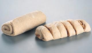 Von der kurzen Teigseite her Schnecken aufrollen. Mit dem Verschluss nach oben auf den Tisch legen und mit einem Metallhorn in 6 gleich grosse Stücke schneiden. Mit der Schnittfläche nach oben in gefettete Backformen (23 cm lang, 8 cm breit, 8 cm hoch) legen.
