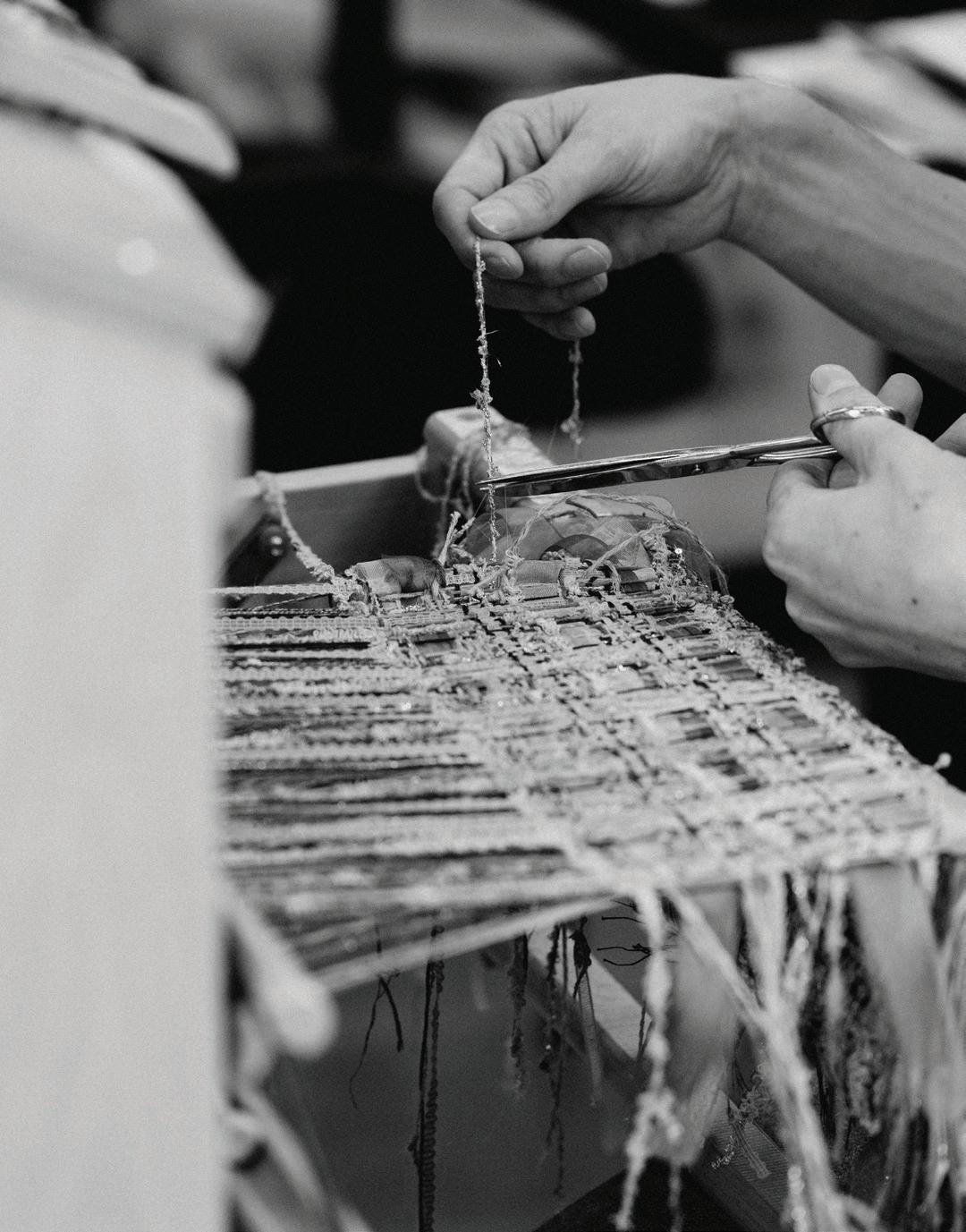 Anne-Marie Ramos sits by a floorto-ceiling window with a bright strip light over her large wooden embroidery frame, on which a strip of the black organza is stretched. She’s bending over a rectangular panel about 30cm by 15cm that will take her 40 hours to entirely cover with sequins in exactly the right colours and textures. No one else could do it any quicker – Ramos has been working at Lesage for 38 years. Using a minute Lunéville crochet hook, she catches the thread, then takes a sequin and attaches it. Over and over again. What’s more, she’s working blind – the sequins are underneath, so she sees the finished result only when she turns it over. “It’s lots of touching, you work with your hands,” she explains. With some designs, she has to crush each individual sequin with a hammer, or fold it with pincers. It’s painstaking, intense work. “But I never get sick of it,’” she says. “You’re always learning.” If there’s a rush on, two women will work on the same small square of cloth to get it finished for a catwalk show, or bride in a hurry. On occasion, six embroiderers will be bent over the same strip; and, says Ramos, there have been times when, crammed round a frame, “I’ve sat on a