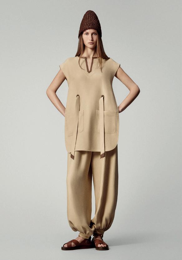 a masterful treatment of luxurious fabrics, with linen to the fore. As per the nature of the collection, clothes are crafted for comfort, but expert tailoring underpins it all; flowing lines that follow the body, as best emphasised by this dress and pants.