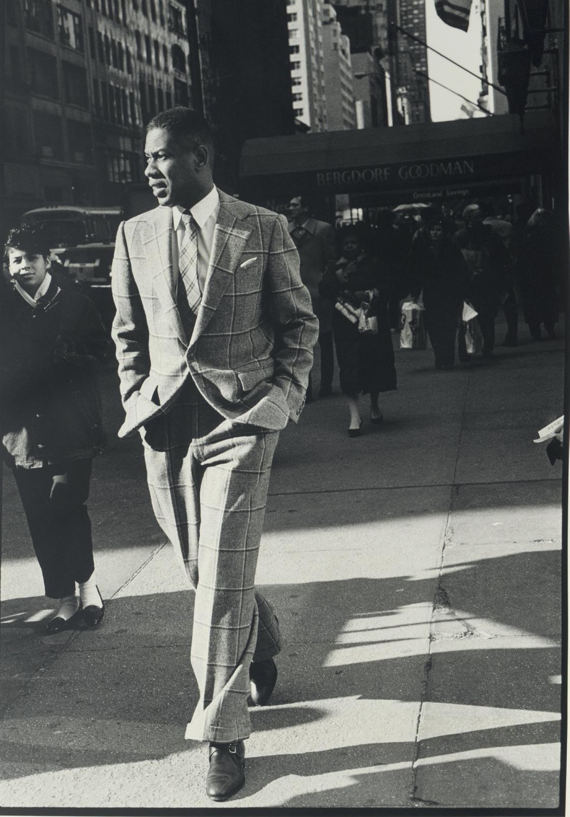 Right: André Leon Talley strolls down 5th Avenue, 1986.