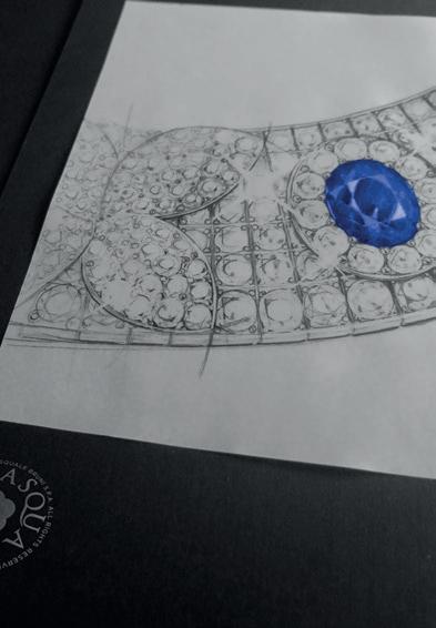 sculpture. It’s a piece comprising three expressions: two 10-piece designs that combine clear and coloured sapphire crystal and the other – limited to 15 pieces – that’s purely formed from clear sapphire. Each adopts a striking if soft hue, reminiscent of a seascape.