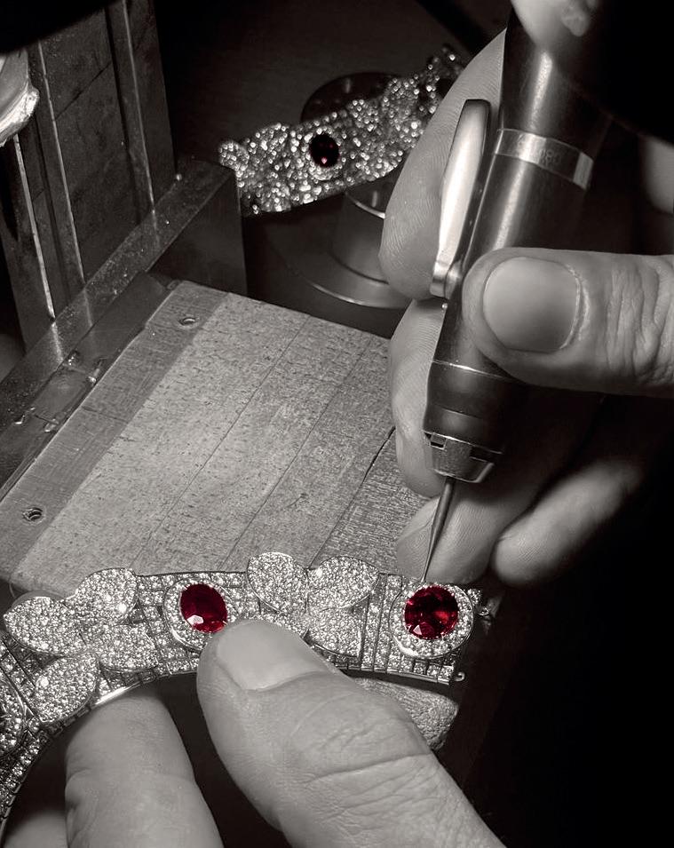 always expressive designs showcased her full range of inspirations, among them animals, flowers and couture. But at the centre of Chopard’s world is the heart, symbolic of the family behind it, which looks resplendent as a ring in tinted aluminium set with vivacious rubies.