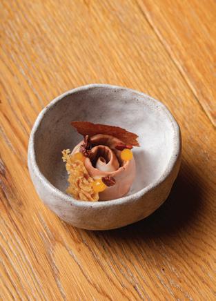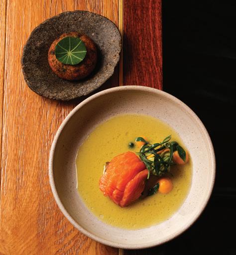 I ngredients are so important that nothing of use is left to waste. When in season, the ripened flesh of mangoes is used in desserts but also preserved for entrées and pureed in butter for bread. Additionally, its stone is cracked to release its oil and its green skin salted and dried to produce a seasoning. This meticulous approach stems from Sharma’s scientific studies, which yielded two master’s degrees – one in neurology from University College London and another in physics from Oxford University –plus a doctorate in condensed matter physics. “My scientific background gave me a mindset that’s all about research and precision. That precision comes in handy when managing the restaurant. But I never really wanted to be an academic, even though I did a fair few degrees, of course. They were opportunities that came