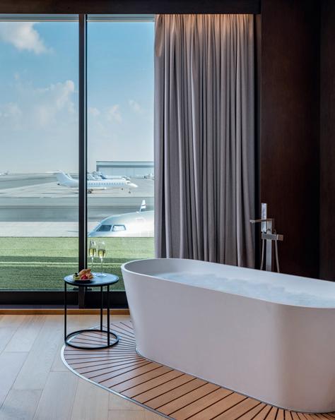 guests through a sauna, salt wall, and ice fountain, promoting circulation, detoxification, and overall vitality. Each experience at ExecuSpa is personalised, with expert therapists tailoring treatments to individual needs. Whether passengers seek predeparture relaxation or post-flight renewal, ExecuSpa ensures that every journey is complemented by a sense of balance and tranquillity. More than just a spa, ExecuSpa is an oasis within the private terminal, where the stresses of travel dissolve into a world of serenity. Here, luxury is not just about what is seen or felt –it is an experience that elevates the very essence of private aviation.