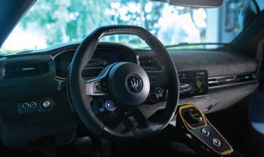 Inside, the track references are even more pronounced. The design of the GT2 Stradale’s steering wheel – thick, sporty, and featuring the start and launch control buttons – is an update of the MC20’s, one which Andrea Bertolini, Maserati’s Chief Test Driver and former World Champion in the MC12, helped design. Totally new are the double shell seats in carbon fibre, which have been designed so that they can be adjusted to position you perfectly, whether high up for the road or low down for racing. Then there are the door handles, which feature ‘pull’ in yellow lettering, a nod to the feeling of being in the cockpit of an actual race car.