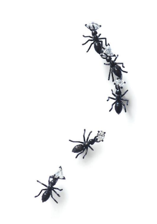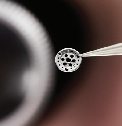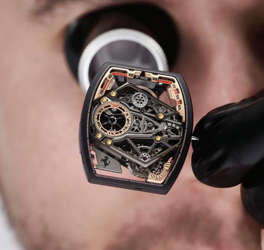 pieces. Their latest offerings evoke designs prevalent during the roaring twenties and include the Art Deco-inspired Fleur, its petals fashioned from carnelian cabochons, its centre a sparkling mosaic of 46 diamonds, and its case crafted from 18-carat rose gold.