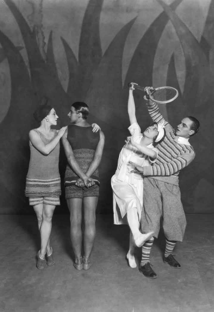 These pages, clockwise from top left: looks in situ for the exhibition at London's V&A; Dorothy + Little Bara priest, Paris © 1960 William Klein; Lydia Sokolova, Anton Dolin, Bronislava Nijinska and Leon Woizikowsky after the first performance of Le Train Bleu in Britain, at the Coliseum Theatre, London, 1924.