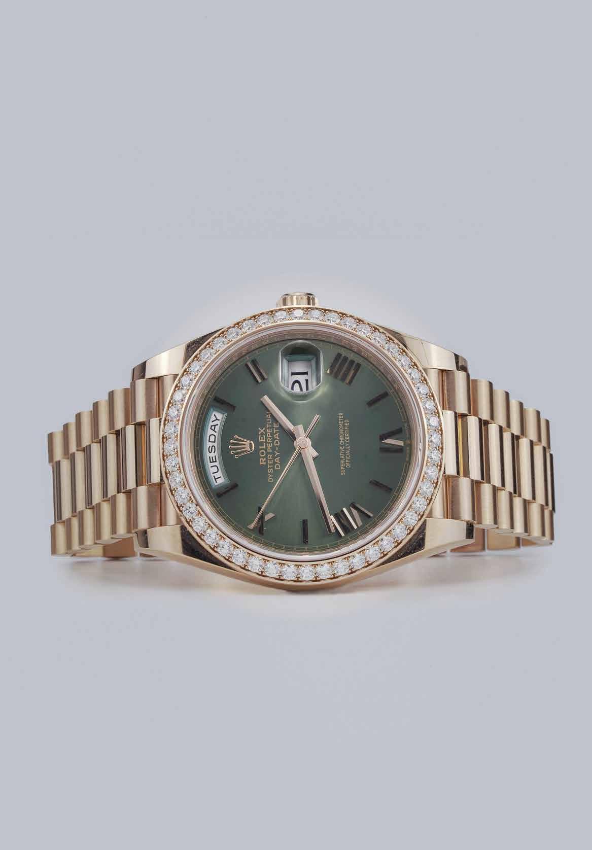 estimates suggest the brand’s prices are 26% up from August 2020. Available from Dubai’s pre-owned Love Luxury boutique, this Rolex Day-Date Oyster in rose gold and diamond dial is a new piece that comes accompanied by its box and papers.