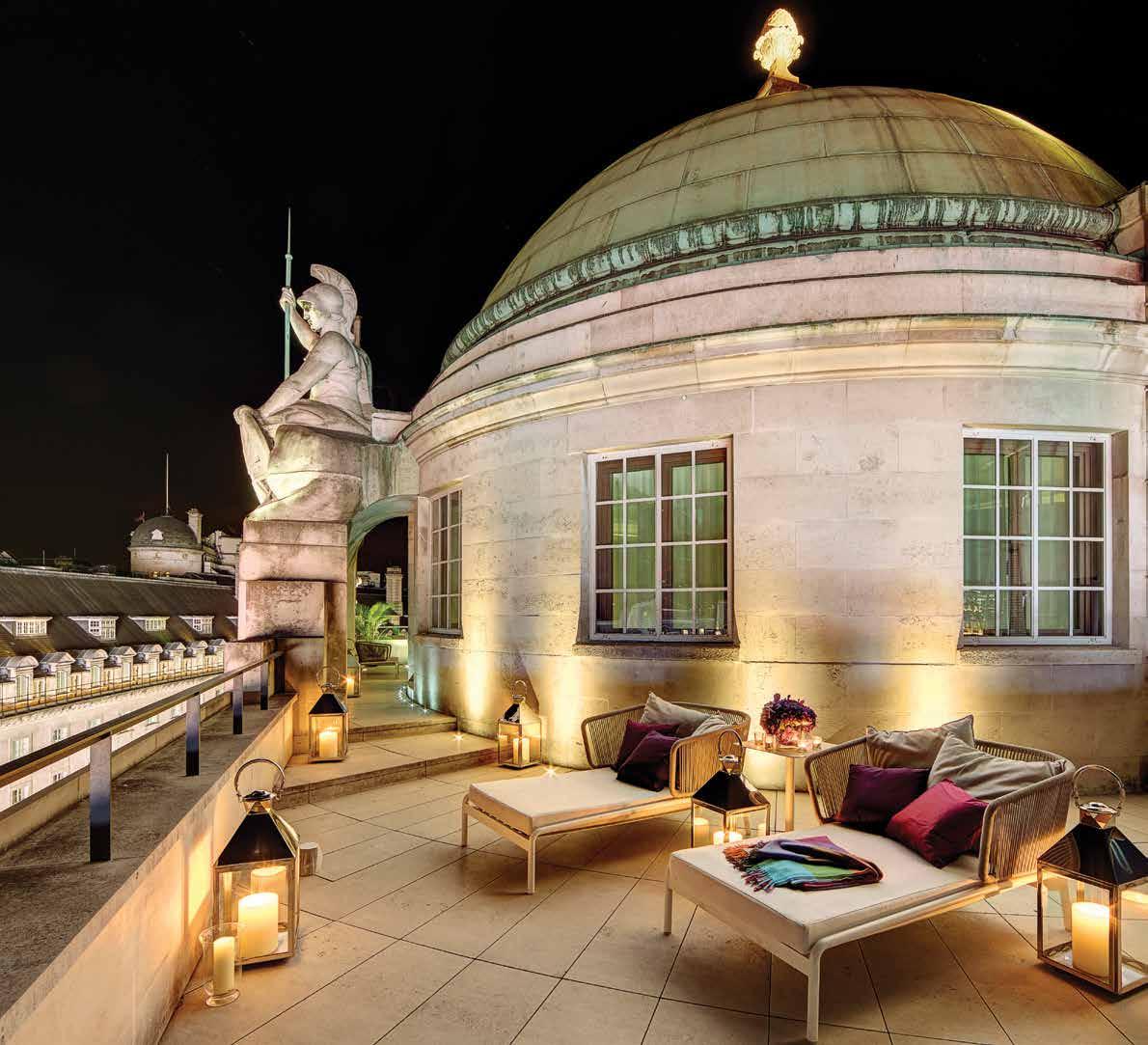 If its enviable location on Regent Street can be called a feather in its cap, its suites must comprise a plumage. There are many great hotels in London with suites to match, but few can compete with Café Royal for variety. Ten categories take you from The Loft, a onebedroom suite high up on the hotel’s top floor that can be configured to include a second bedroom, to the room-with-a-view (over London’s rooftops) Oscar Suite. And from the Two Bedroom Grand Regent Suite that sleeps up to four adults to the Three Bedroom Family Suite that can house up to six.