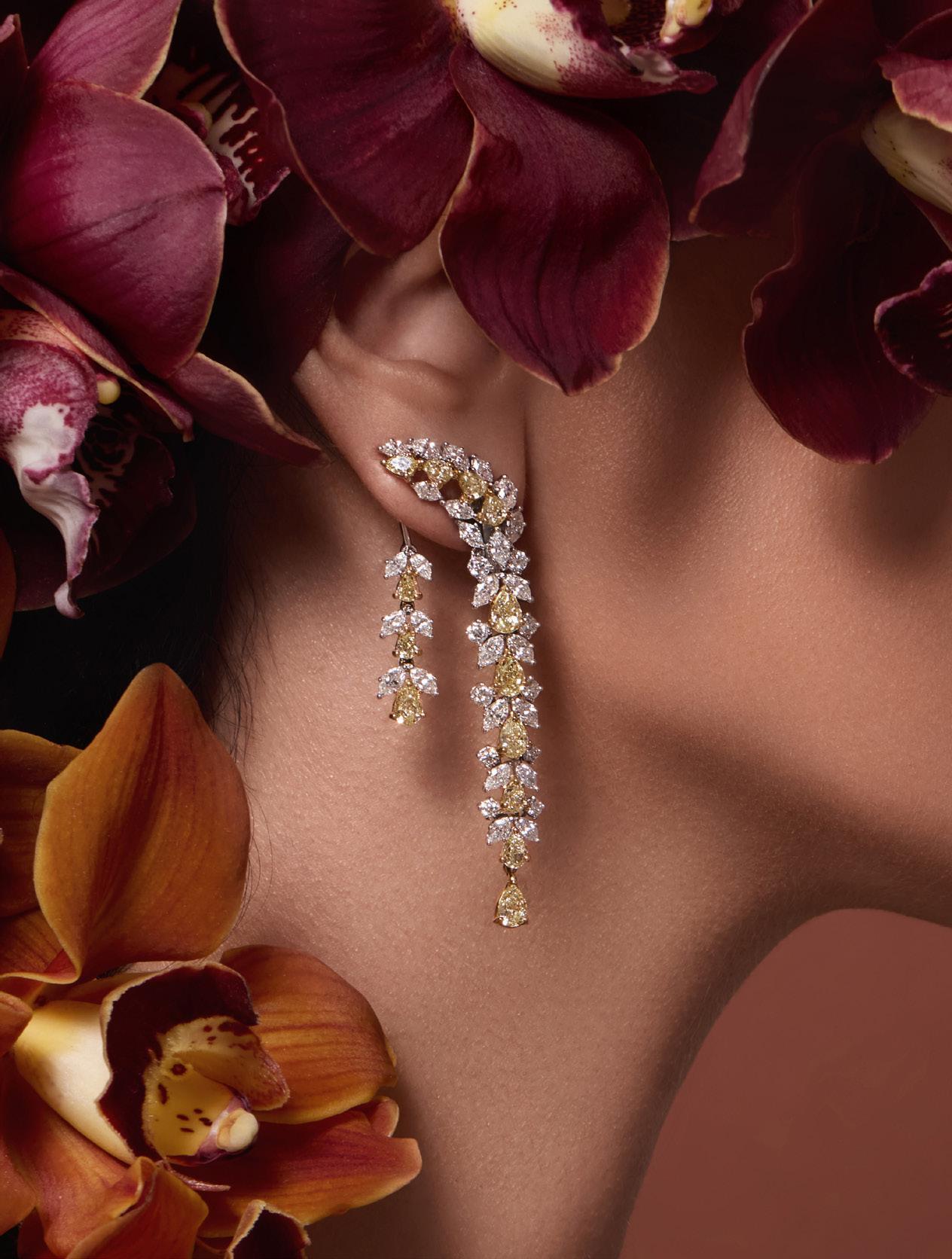 One of many statement pieces from the second instalment of Messika’s sparkling Midnight Sun collection, this magnificent Fragments of Time high jewellery piece weaves together two necklaces and a pair of stunning diamonds: one a 36-carat yellow