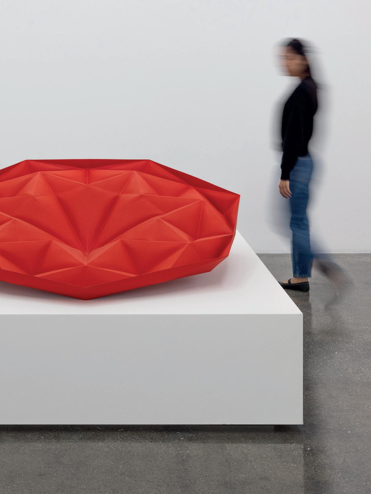 One of the UAE’s most beloved and prominent artists, Shaikha Al Mazrou has been commissioned by Jimmy Choo to create an artwork that will serve as an ongoing, ever-evolving dialogue between the brand and the wider thriving art scene in the Middle East. The piece, titled Symmetrical Repeats , is characteristic of Al Mazrou’s acclaimed body of work, which explores materiality and form, and makes a feature of Jimmy Choo’s faceted diamond design motif. “Shaikha Al Mazrou’s work captures the strength, beauty and multifaceted nature that define both our brand and our community,” says Sandra Choi, Creative Director, Jimmy Choo. “It’s a privilege to collaborate with an artist who represents the dynamic spirit of the UAE.” Fashioned from steel and coloured a vibrant red, Symmetrical Repeats will be permanently installed at Jimmy Choo’s flagship boutique in The Dubai Mall.