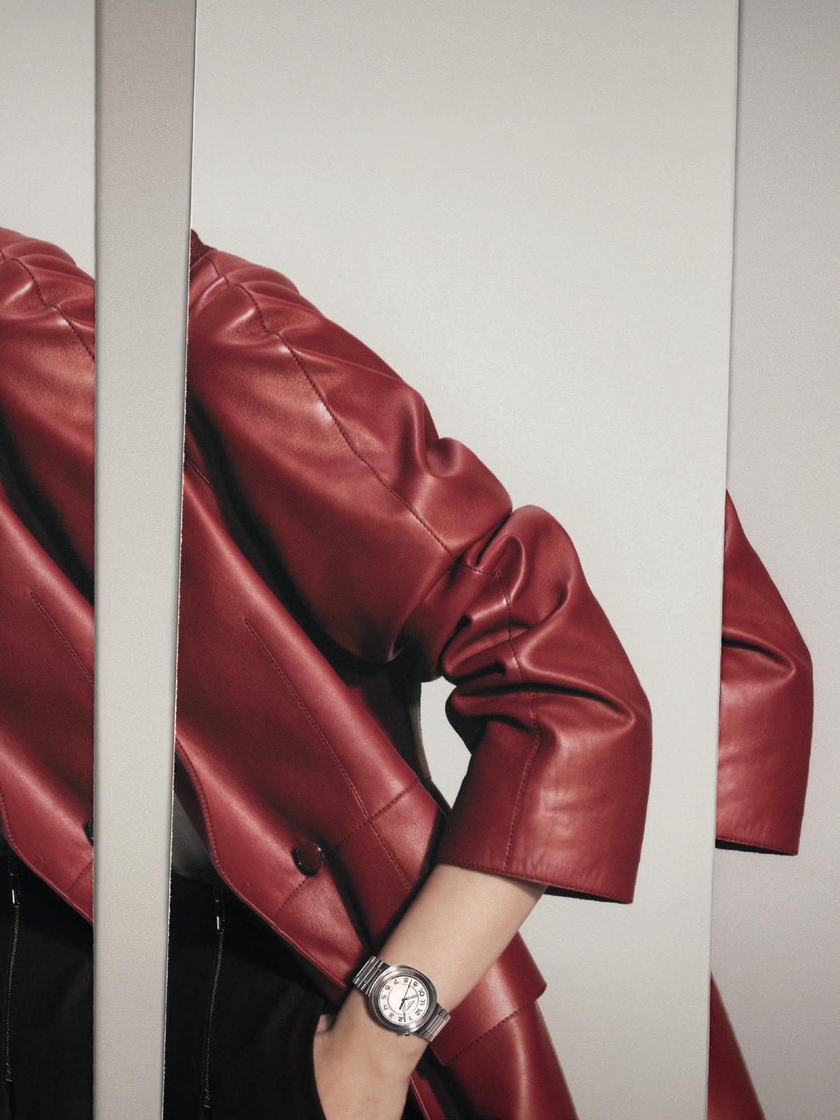 The Première watch – the first of which was issued in 1987 – comprises many elements of the house’s signature designs: its octagonal case is representative of the stopper atop the legendary No. 5 bottle, while its bracelet channels the chained shoulder strap of its bags. Yet this latest iteration is thoroughly modern, fusing state-ofthe-art technology with jewellery and watchmaking know-how to create a watch on a chain, with noise-cancelling headphones and a microphone, that connects to your smartphone.