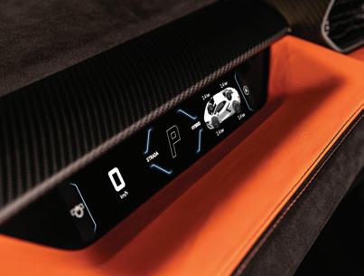 Supercar makers are seldom at the cutting edge of digital technology and often plough their own furrows and so it proves with the Revuelto. There’s a single flat instrument binnacle with a huge central rev counter, a digital speedometer, displays for battery state of charge and fuel contents, with flanking gauges for the radio/stereo and power distribution, although you can shift these around.