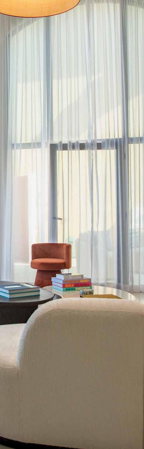 The bespoke aesthetic exudes elegant luxury throughout and is based on a neutral colour palette, enlivened with thoughtfully designed colour and styling accents, that seamlessly connects to the natural beauty outdoors.