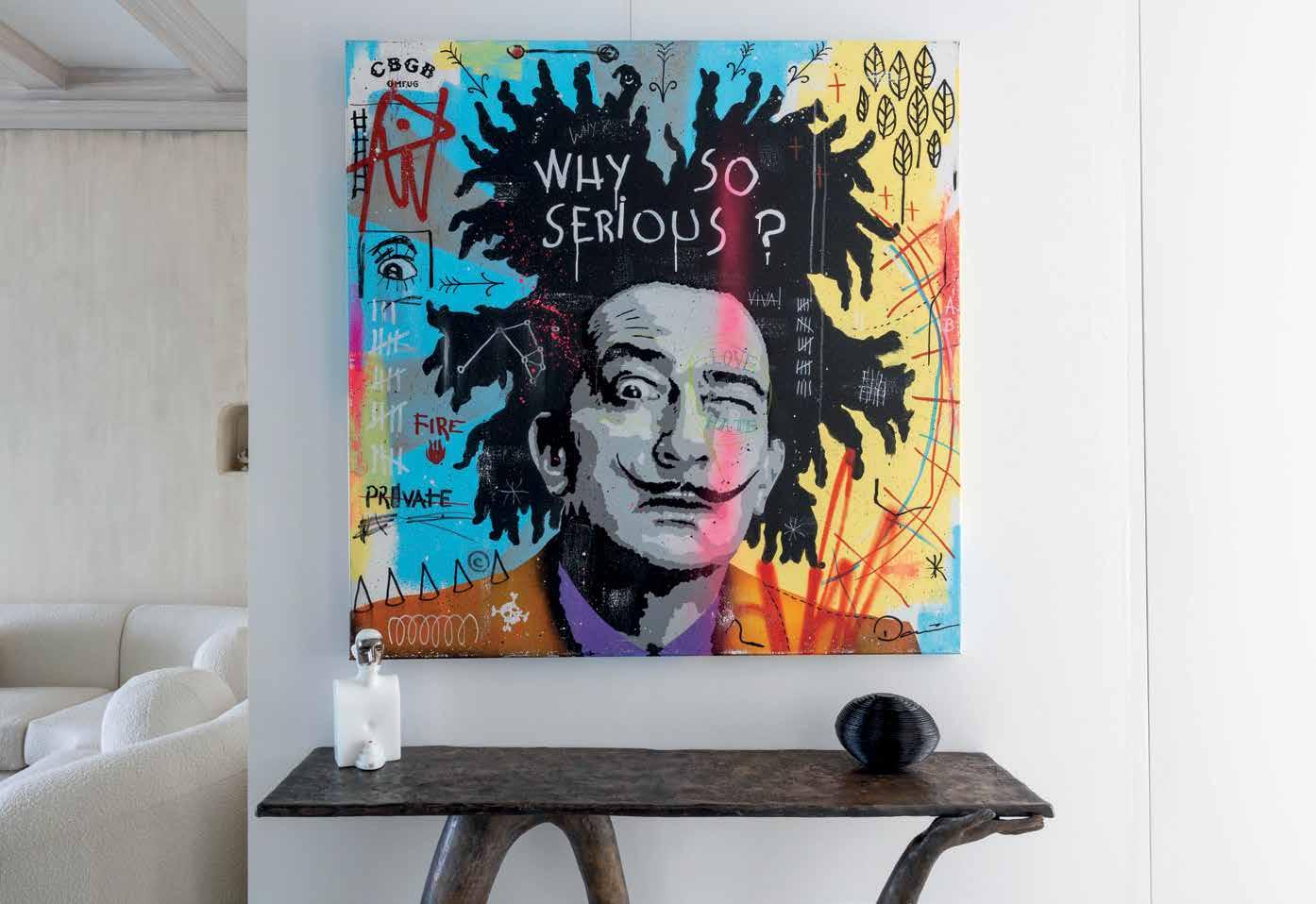 Apainstaking four-month labour of love saw Rébia Naïm transform her four-bedroom apartment into an immersive living art gallery that houses a private collection of pieces amassed during 18 years in Dubai. “We didn’t want to design a luxury home, instead, we were determined to create a luxurious experience that reflects the ‘richness’ of our life in the city,” she says. An early pioneer of the UAE art scene, Rébia’s collection is the outcome of exceptional encounters with artists and galleries around the world. Finding a way to showcase key pieces, while retaining function and comfort, was paramount, as she explains: “The scale and proportion of the furniture were carefully considered to ensure that it complements the artwork, rather than overpowers it.” The baby grand piano was chosen as a sophisticated centrepiece for the living area, while the surrounding art adds vibrancy. Rébia deliberately kept the furniture versatile and adaptable to accommodate future changes in the art collection, looking to leading brands such as Bo Concept and Marina Home. The bathrooms were also made over to match each bedroom’s unique theme, featuring warm wall tiles and industrial grey flooring, accented with luxurious marble ceramics. Says Rébia: “Living in Dubai will always feel like a holiday, so we wanted to create an inviting atmosphere that was both luxurious and intimate. In particular, I love the connectivity between the living and dining areas. It enhances the overall ambience, allowing for seamless transitions between different moods and activities.”