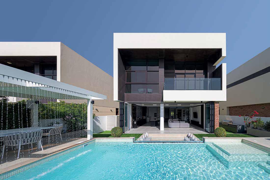 An oasis within the verdant Jumeirah Park villa community, the owner’s brief was to design a home that would stand apart from other properties in this sought-after community. “With thousands of villas in the development, we wanted to create something unique and showcase what could be achieved within the existing villa footprint and in compliance with the master developer’s constraints,” notes the team from Reimagine Spaces. Working with an acclaimed architect and respecting the client’s request for unparalleled practicality, modernity, and beauty, they mapped out every inch of the 7,800 square feet of space both inside and out. From the wide-open, cool white interiors featuring warm wood accents, abundant greenery and arty pops of colour, through to the L-shaped pool with sunken seating areas, a fire pit and elevated sunbathing spaces, this villa ticks all the boxes. The seamless blend of sleek design and topquality finishes is evident throughout, making it a perfect balance between form and function. “The result is a home that looks entirely different from others in the community, and is practical, modern and visually outstanding.”