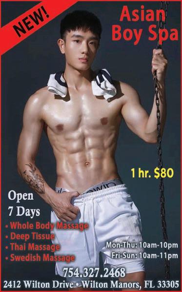 Offering a great massage for Men with a fusion of different techniques; always relaxing, always a great experience. Whether you’re experiencing muscle discomfort or just looking to relax...I have a very comfortable studio conveniently located in Wilton Manors on NE 26th Street. Affordable Rates! 954-600-5843. Licensed and experienced LMT. Lic#MM22293